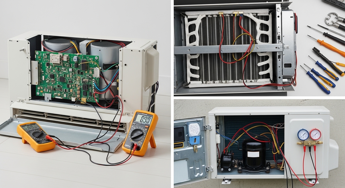 We thoroughly check the AC, wiring, compressor, temperature sensors, and airflow.