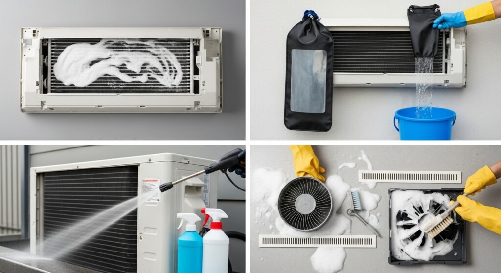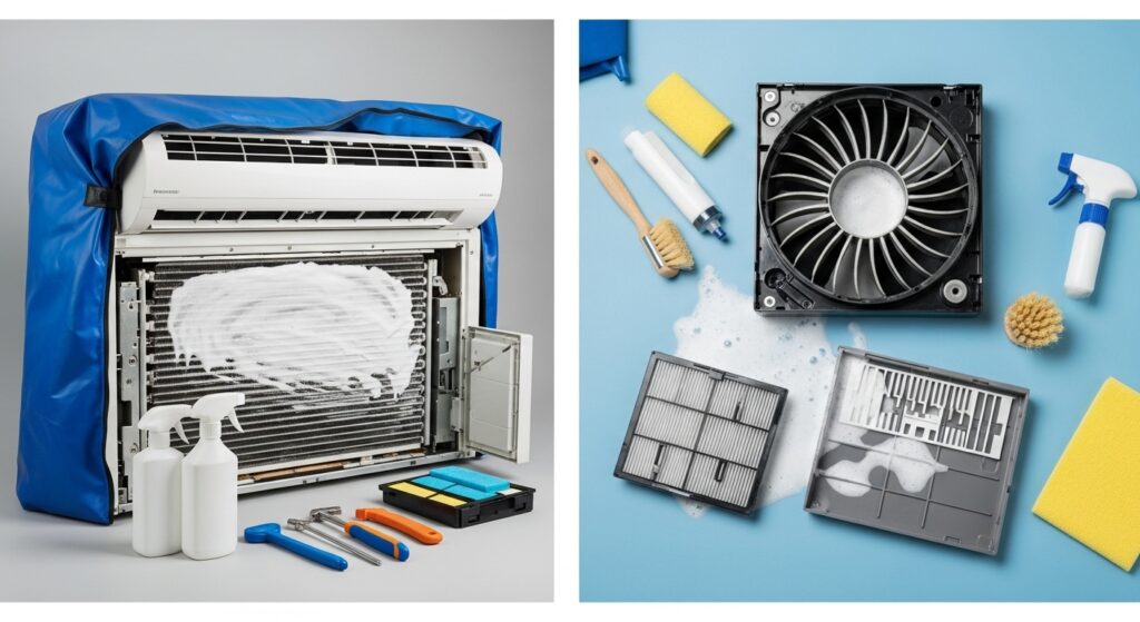 Advanced Chemical Deep Cleaning Every internal component—including coil, fan blower, drain tray, and casing—is treated with premium-grade chemical solutions.